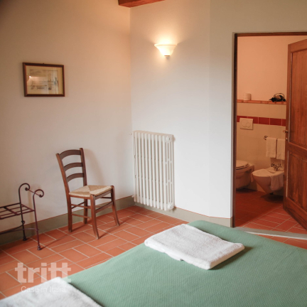 The apartments are spread between old buildings and outbuildings and can accommodate 3 people (2+1). Inside, the style is simple and characteristic, with a living area and kitchenette with hob, fridge-freezer, microwave, coffee maker and dining table. The bedroom has a double bed, safe and a bathroom with shower; A third bed is in the living room or in the bedroom. Outside you have a private seating area with a view of the green hills. Air conditioning is available in some of the apartments and Wi-Fi is available almost everywhere. Around you will find a swimming pool with sun terrace, a spacious garden with playground equipment and bicycles to explore the area. The village of Grassina is about a 1 km walk away, although the altitude difference route requires some effort.