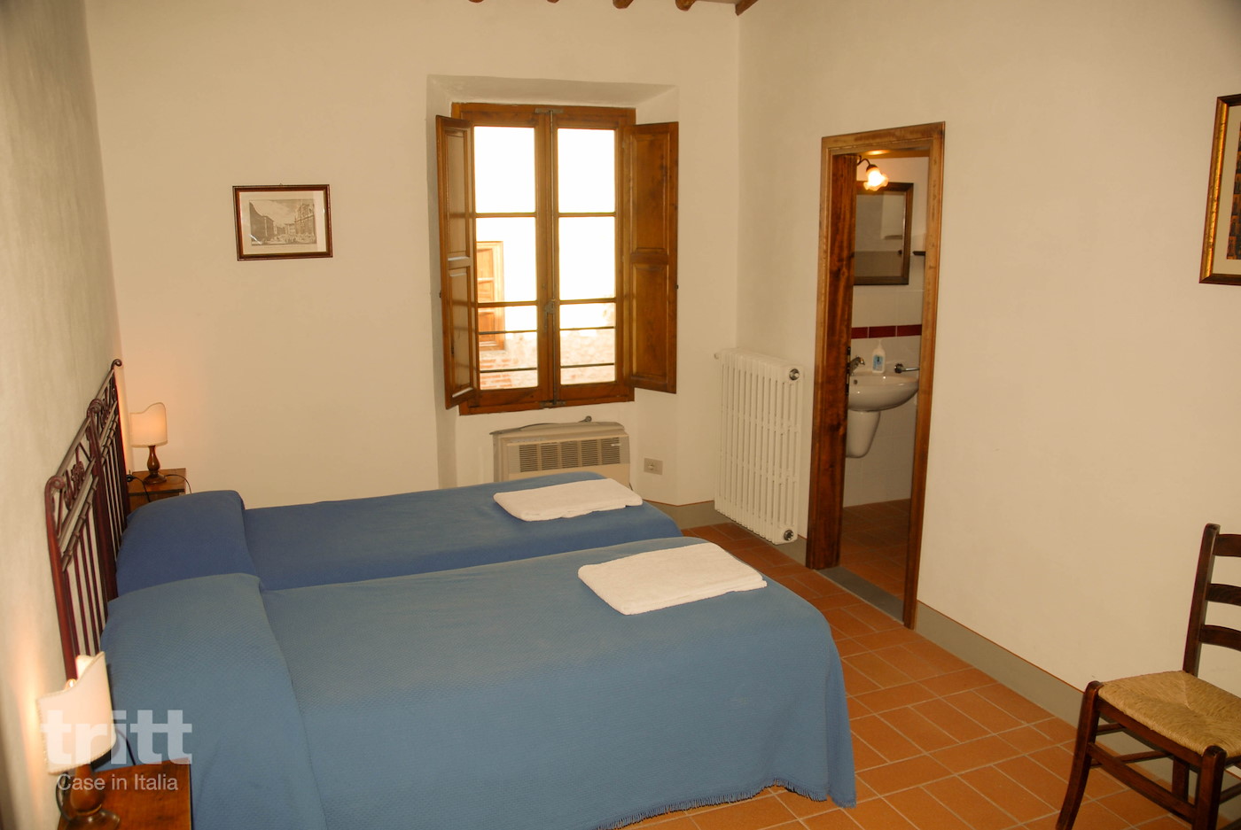 This holiday home is spread over several levels and can accommodate 4 to 5 people. You enter an attractive kitchen with dining area and a simply equipped kitchen, after which a staircase leads to the loft where there is a bright living room with sofa, TV and an extra bed. On the first floor there are two bedrooms, each with its own bathroom, and both with air conditioning. At the entrance of the house is a private seating area with table and chairs, ideal for a quiet morning or a glass of wine at the end of the day. A short walk away is Grassina, with shops, bakery, bars and small restaurants.