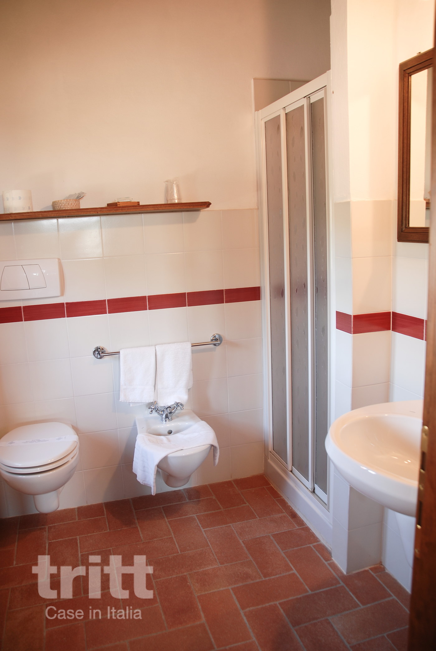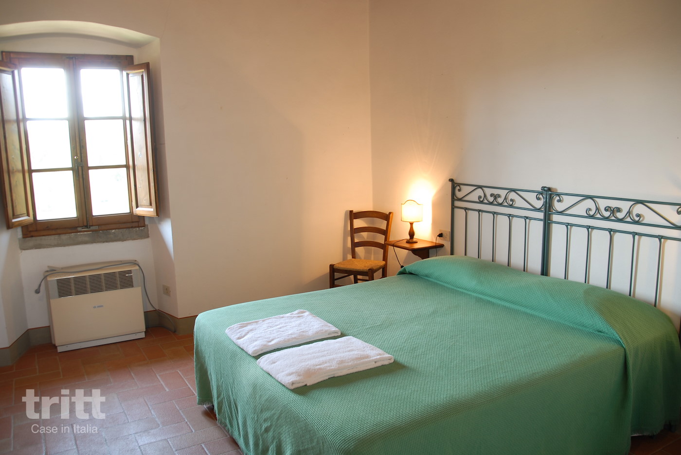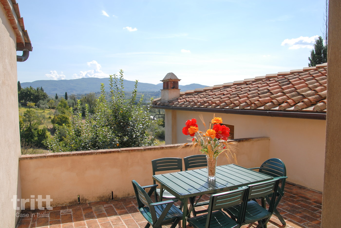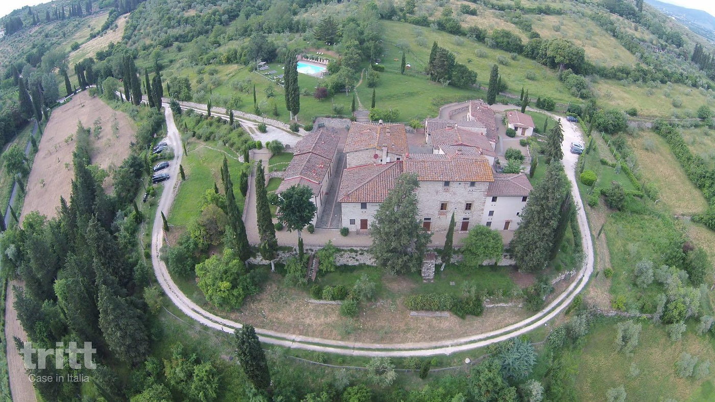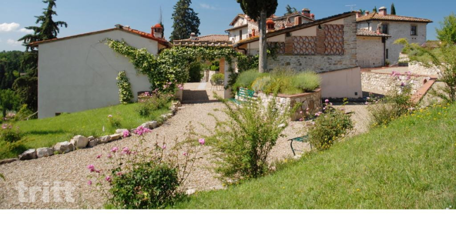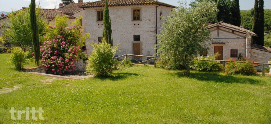 The top floor has three bedrooms: two with a double bed, each with its own bathroom with shower and toilet, and a third bedroom with two single beds and also a private bathroom. Outside there is another small private room with table and chairs. The estate has a swimming pool with sun terrace, spacious gardens and playground equipment, while bicycles are ready to discover the immediate surroundings. About 1 km away is Grassina, with a supermarket, bakery, ATM and cosy bars and restaurants — be aware of the elevation changes on the walk back up the hill.
