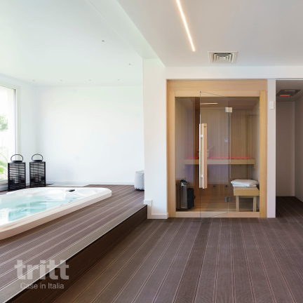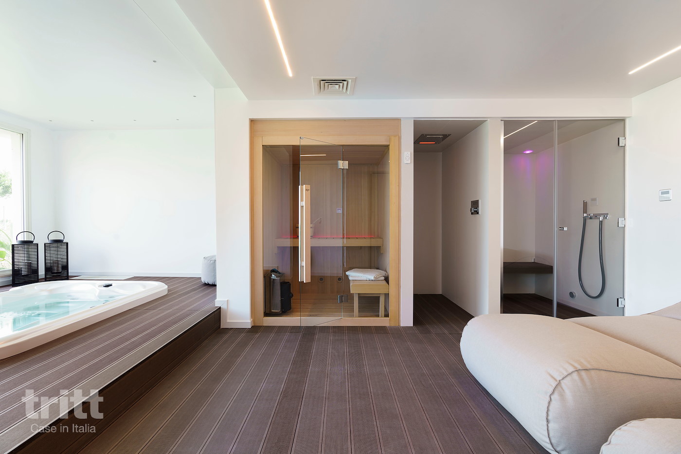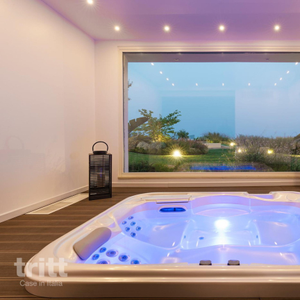 CIR: 19088006C212552 – CIN: IT088006C249UCKP8N Villa geheel gelijkvloers: ruime woonkamer met zithoek, open haard sat tv, eetgedeelte en open keuken, 3 tweepersoonskamers met tweepersoonbed en elk een eigen badkamer met douche, wastafel, toilet; 1 slaapkamer met 2 eenpersoonsbedden en eigen privé badkamer met douche, wastafel, toilet en bidet; spa met jacuzzi en sauna, Turks bad.