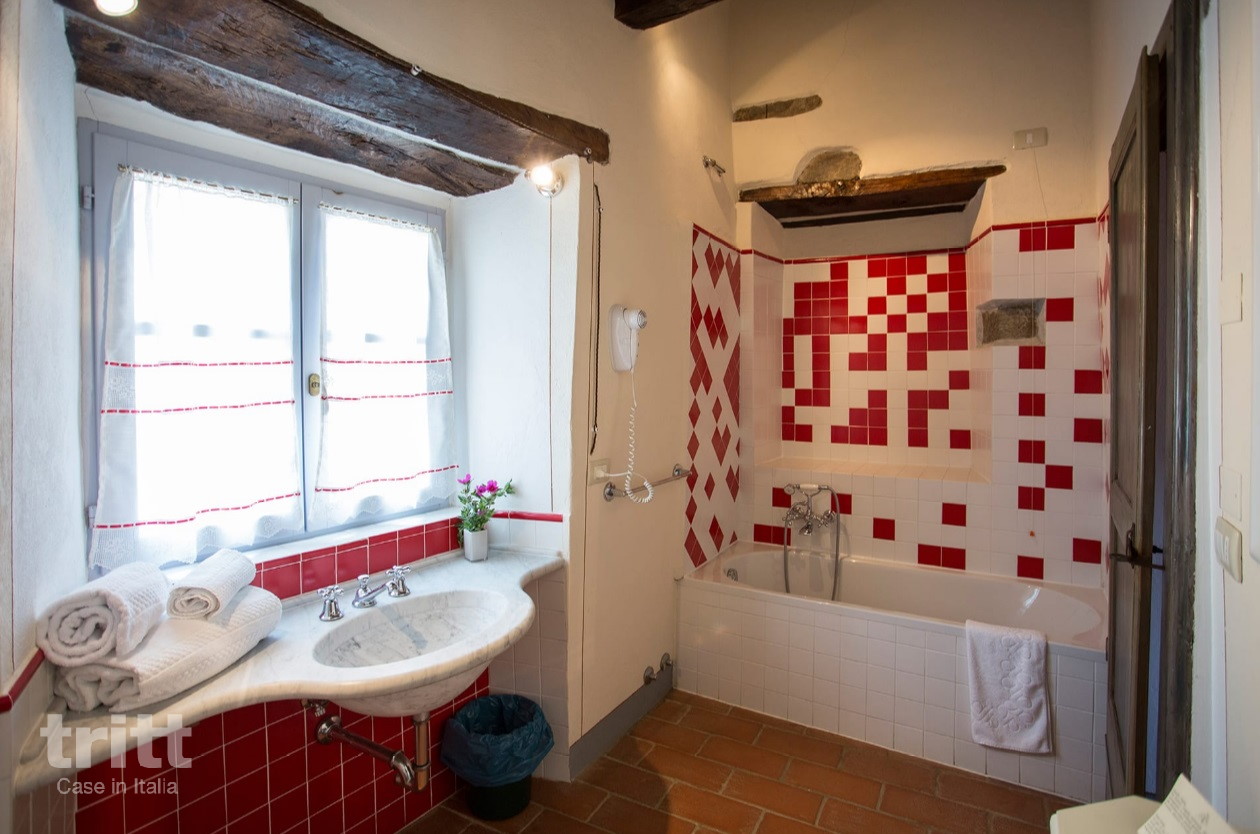 CIN: IT051012B52MXJT7A8 Woonkamer met open haard; keuken; slaapkamer met tweepersoonsbed met aangrenzende badkamer voorzien van wastafel, toilet, bidet en douche; tweede slaapkamer met tweepersoonsbed ook met aangrenzende badkamer met wastafel, toilet, bidet en bad; derde slaapkamer met 2 eenpersoonsbedden en badkamer met wastafel, toilet, bidet en douche. Vanuit deze slaapkamer toegang tot een loft met zitje. Alhoewel het appartement op de eerste verdieping ligt, boven La Casa Rosa 1, heeft het ook een eigen entree via een mooi terras en een eigen privé tuin met zitje en barbecue. Dit komt door de niveauverschillen rondom het huis, waardoor de entree in feite toch begane grond is. Daarnaast kunnen gasten van dit appartement gebruik maken van de gezamenlijke pergola in de tuin. Het appartement ligt op ca. 120m van het zwembad. De Borgo heeft een ideale ligging om een aantal interessante plaatsen in deze streek te bezoeken. Wat dacht u van Arezzo, Cortona, het Trasimeno meer en Assisi? Stuk voor stuk de moeite meer dan waard. Als u van antiek en brocante houdt en hier verblijft de eerste zondag van de maand dan moet u zeker naar Arezzo, waar op die dag maandelijks de antiekmarkt wordt gehouden. Heerlijk om door de straatjes te slenteren en het uitgebreide aanbod te bekijken. Ook Cortona is een must. Deze mooie, van oorsprong Etruskische stad is beroemd om haar middeleeuwse straatjes, musea, paleizen en pleinen. Wist u dat in Cortona veel beroemde films zijn opgenomen zoals La Vita è Bella van Roberto Benigni en Under the Tuscan Sun, een film gebaseerd op het boek van de Amerikaanse schrijfster Frances Mayes. Het Trasimeno meer, het op 3 na grootste meer van Italië, ligt op ca. 22 km en u kunt via de borders van het meer richting Perugia rijden, de chocoladestad en hoofdstad van Umbrië. In Perugia vindt elk jaar in juli het Umbria Jazz festival plaats. U kunt hier allerlei jazz stijlen beluisteren en er zijn ook veel open lucht concerten die u gratis kunt bijwonen. Bij het meer zelf is Castiglione del Lago leuk om te bezoeken, het is een van de belangrijkste steden bij het meer, het heeft een gezellig centrum met tal van winkeltjes en restaurants. In het meer vòòr Castiglione del Lago liggen 3 eilandjes: Isola Minore (privé eigendom), Isola Magiore en Isola Polvese. De laatste twee kunt u bezoeken met een veerboot.