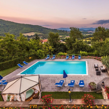 Palazzo Monterchi is een echte Toscaanse villa in Liberty stijl met privé zwembad, ca. 3 km van het pittoreske plaatsje Monterchi. De villa wordt omringd door een landgoed van 25 hectare met wandelpaden langs oude eiken, cipressen en pijnbomen. Mooie plek voor een familie happening in Toscane!