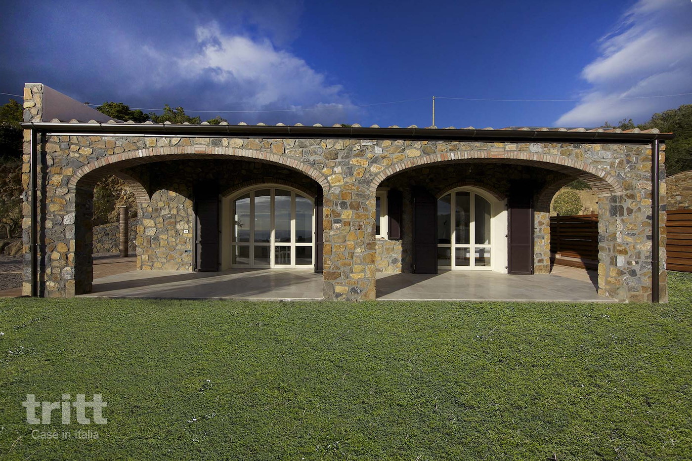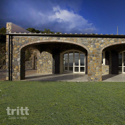Deze met lokale natuursteen gebouwde, moderne vakantiewoning op Elba, Italië kijkt uit over de Tyrreense zee. Door de centrale ligging heeft de villa zowel uitzicht op de baai van Portoferraio aan de noordkant als op de baai van Stella aan de zuidkant.