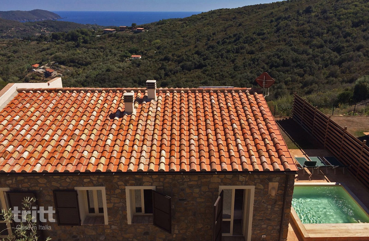 Deze moderne villa met jacuzzi op Elba is gebouwd met lokaal natuursteen, leuk detail is de karakteristieke gevel in de vorm van de hoed van Napoleon. De villa heeft zowel spectaculair uitzicht op de baai van Portoferraio aan de noordkant als op de baai van Stella aan de zuidkant.