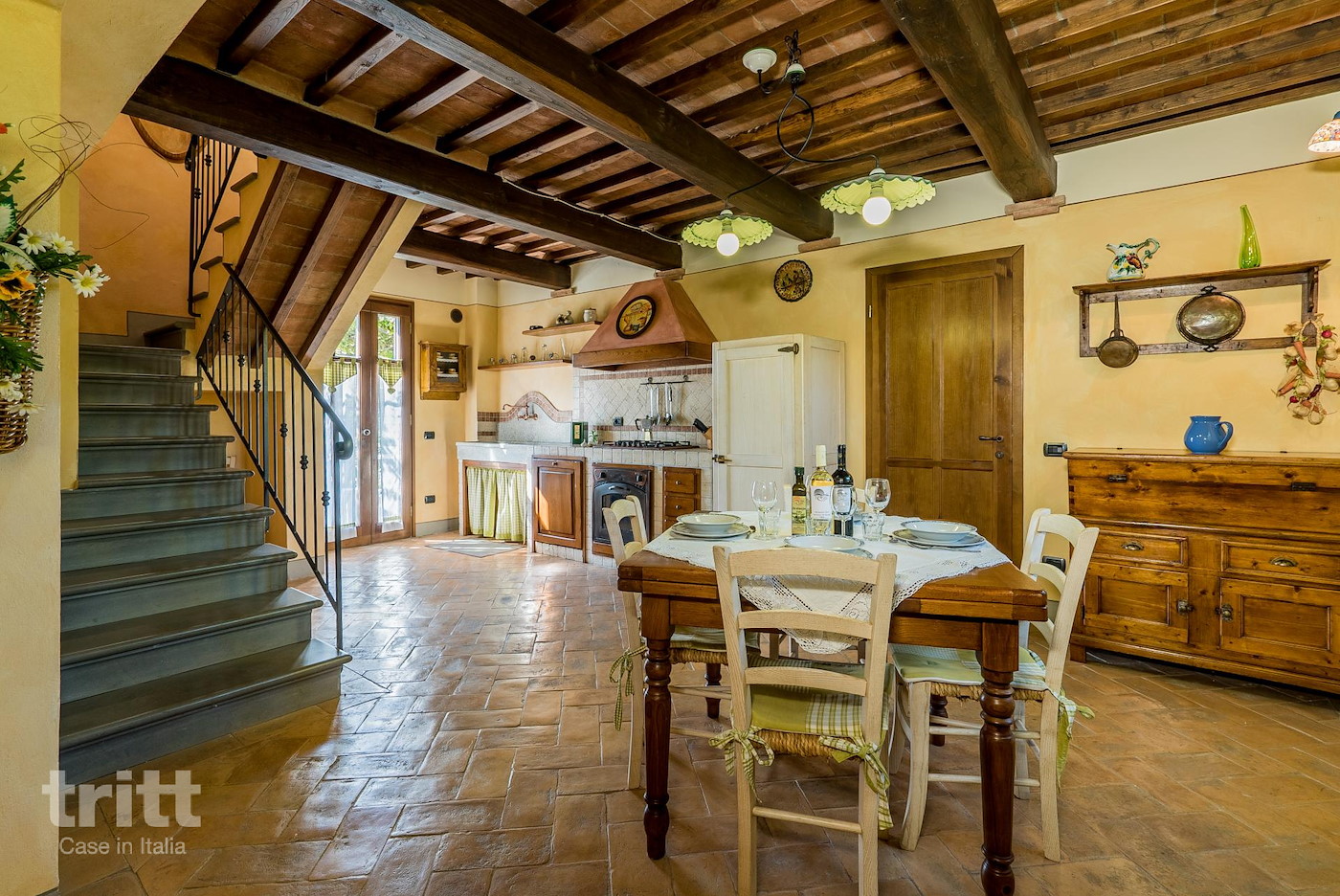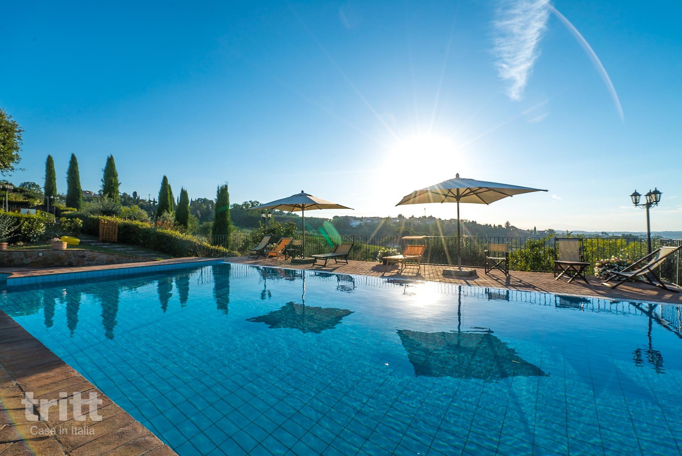 Het vakantiehuis is volledig omheind. Het gezamenlijke zwembad met bubbelbad is mede door de luxe ligbedden, comfortabele stoelen, een schommelbank, tafeltjes, grote parasols en een douche, dé plek voor ontspanning. De inrichting is in Toscaanse stijl, denk hierbij aan terracotta vloeren, houten balkenplafonds en badkamers met keramische tegels.