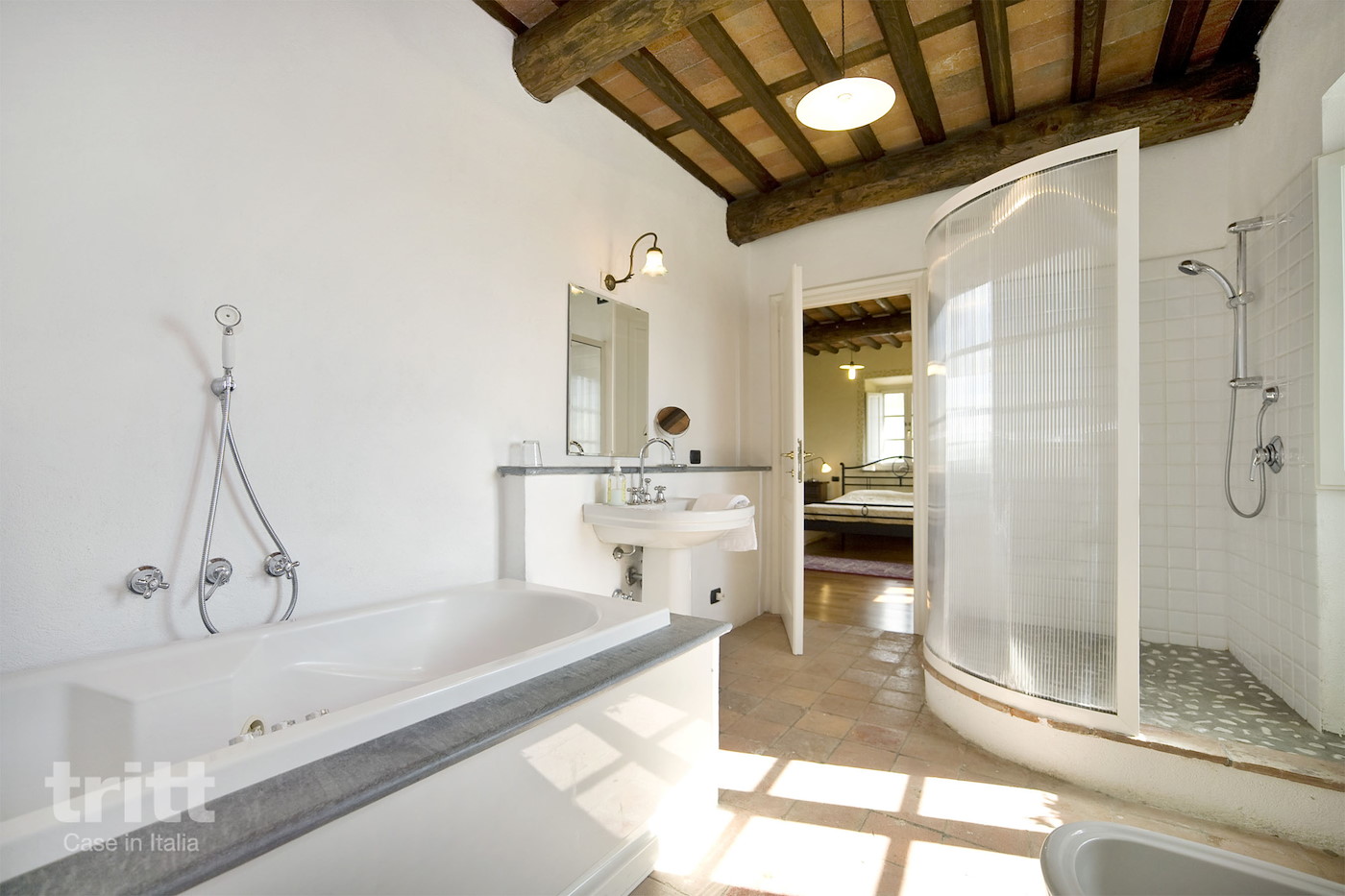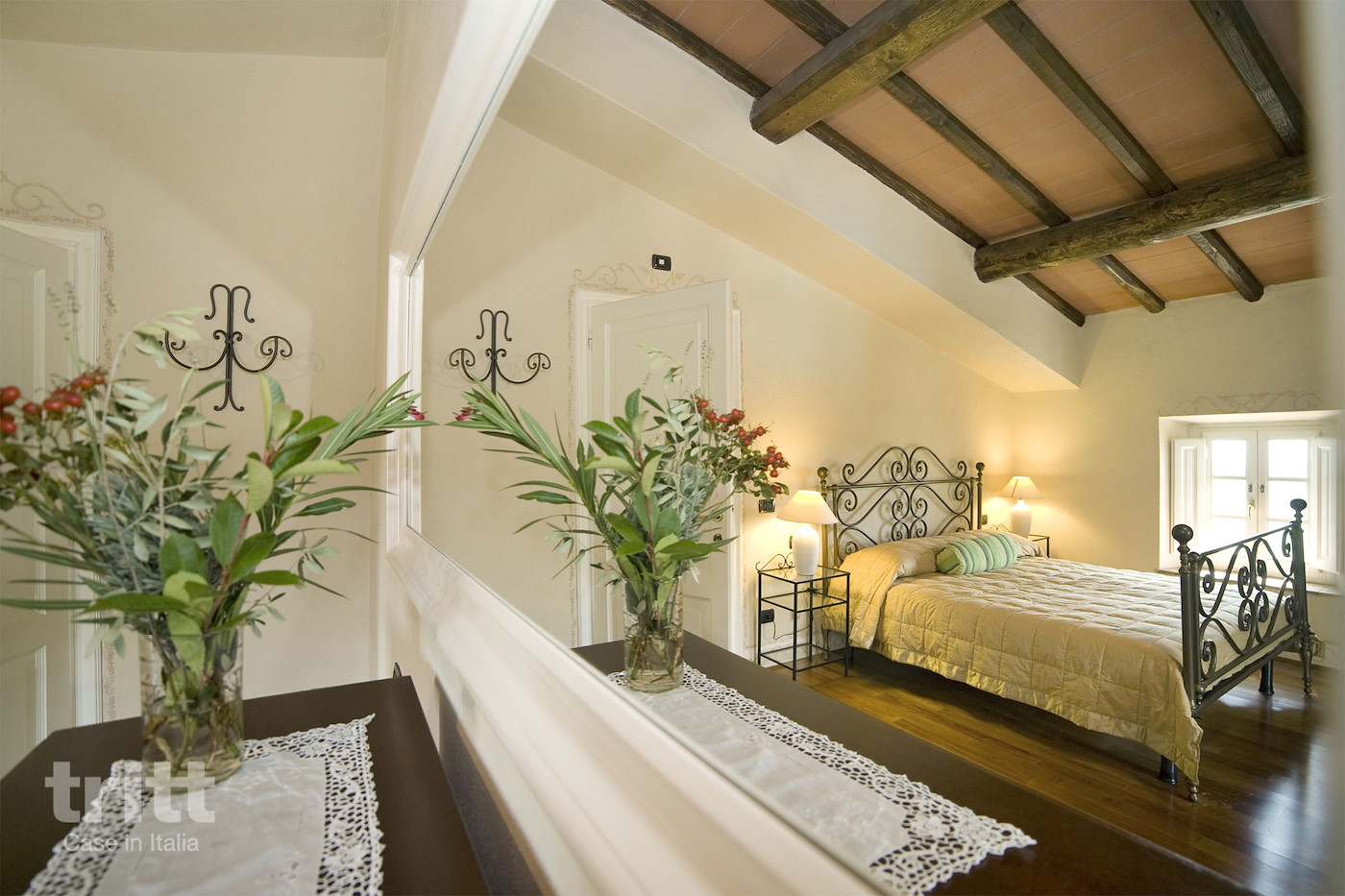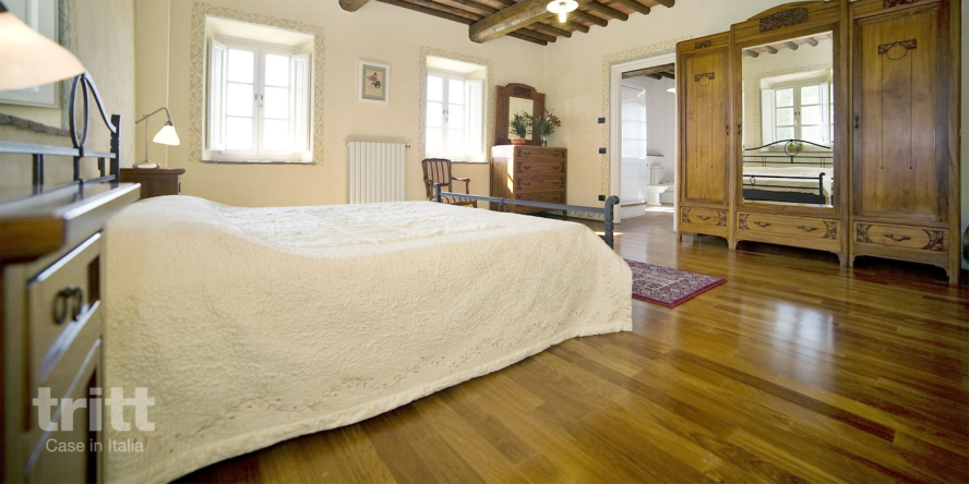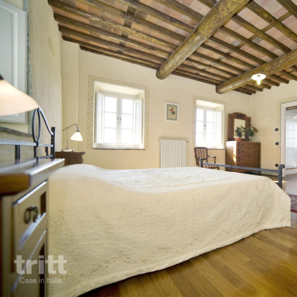 De 5e tweepersoonsslaapkamer bevindt zich in een dependance in de tuin, tegenover het grote huis. Het is een schattig huisje met op de begane grond een klein woongedeelte en een badkamer met douche en op de verdieping een slaapkamer met tweepersoonsbed. Deze slaapkamer heeft airco, het grote huis niet. Het landgoed met de villa ligt binnen de gemeentegrenzen van Capannori, op ca. 15 km van Lucca. Het landgoed is nogal uitgestrekt, de villa zelf ligt op ca. 1,5 km van het hoofdgebouw van de fattoria. Dus optimale privacy bij het huis.