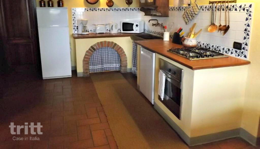 Buiten beschikt dit vakantiehuis over een prachtige veranda waar je heerlijk in de schaduw kunt eten. De tuin heeft voldoende zon- en schaduwrijke plekken om te zitten en/of te liggen. Bij het privé zwembad geniet je van een prachtig uitzicht over het omliggende berggebied. Er zijn 8 zit stoelen en 8 ligstoelen aanwezig en tussen de bomen kan je ook lekker relaxen in een hangmat. Naast het huis is verder een grote houtoven/barbecue aangebouwd. De auto kan je parkeren naast het huis. Mocht je een keer geen zin hebben om te koken maar wil je wel “thuis” eten, dan kan je op aanvraag (bij de eigenaresse) een kokkin laten komen om een lekkere Toscaanse maaltijd te bereiden.