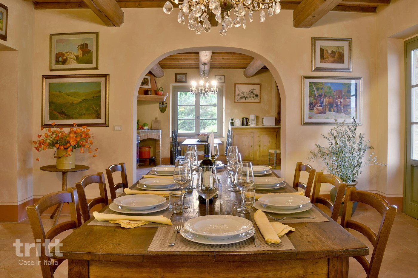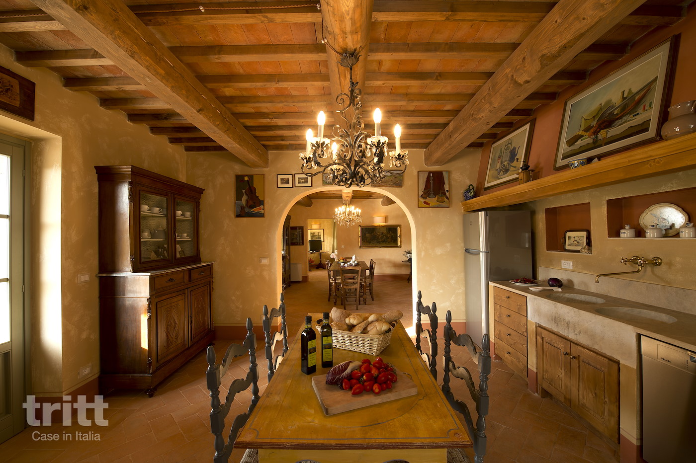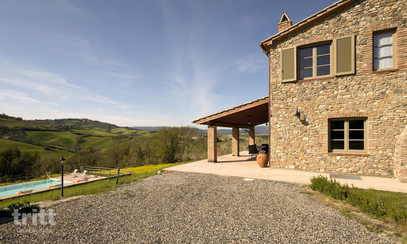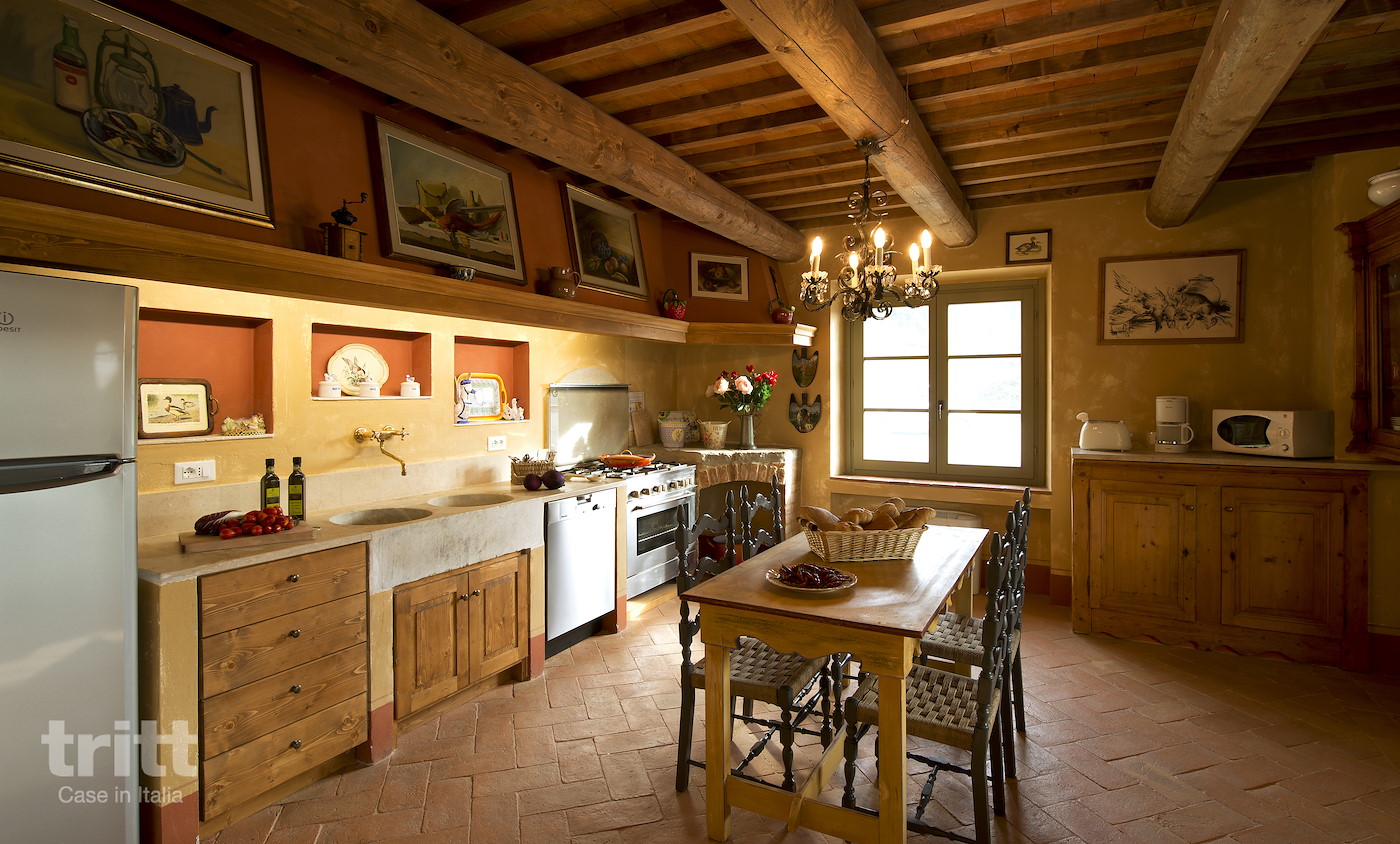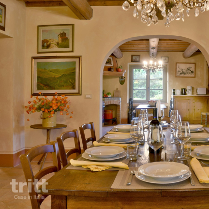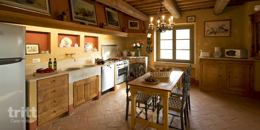 Het huis beschikt over een privé zwembad (omheind), dat ook verwarmbaar is (heerlijk in het voorjaar!). Het zwembad is iets lager gelegen en bereikt u met een stenen trap. Op het ruime terras rondom het zwembad staan ligstoelen en parasols en kan volop worden genoten van het uitzicht. Aan het huis zit een terras met veranda waar u heerlijk buiten kunt eten en zitten tot in de late uurtjes. Het huis zelf heeft een ruime woonkamer met openslaande deuren naar buiten, een eetkamer ook met openslaande deuren naar de veranda en een ruime, typisch Toscaanse keuken met open haard, die uitnodigt om te kokkerellen. Het huis is smaakvol ingericht met aandacht voor details.