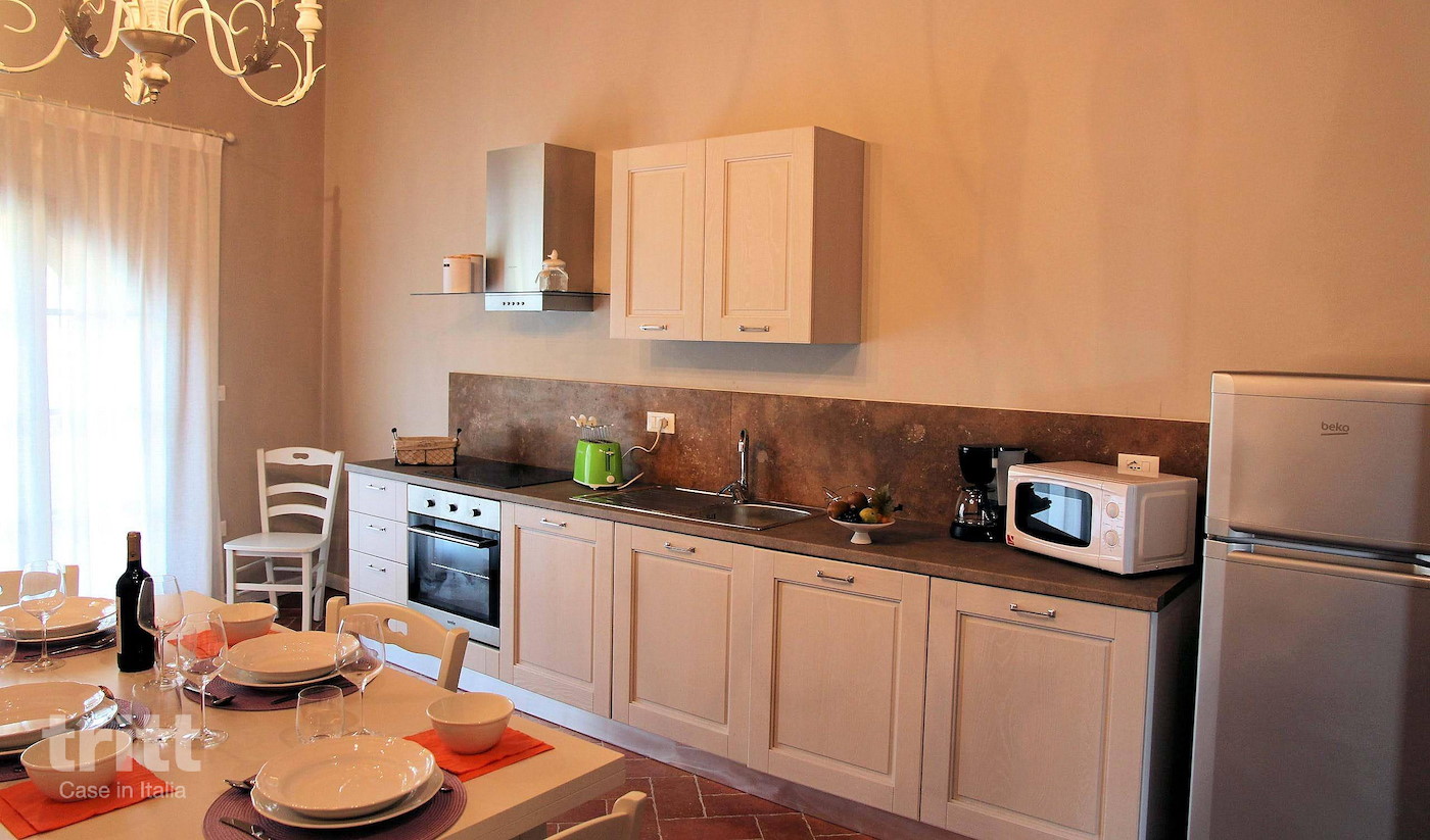 CIN: IT050016B4KTL7VQRO (4+2 Pers.) Op de begane grond een ruime woonkamer met tweepersoons – zit/slaapbank (queensize), sat-tv, keukenhoek met 4-pitskookplaat, koelkast met vriesvak, magnetron, oven, vaatwasser, eethoek en basis keukeninventaris, w.o. filterkoffiezetapparaat; badkamer met douche, wastafel en toilet; trap naar de verdieping.