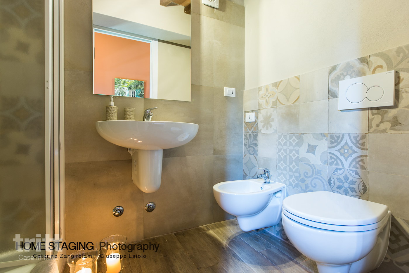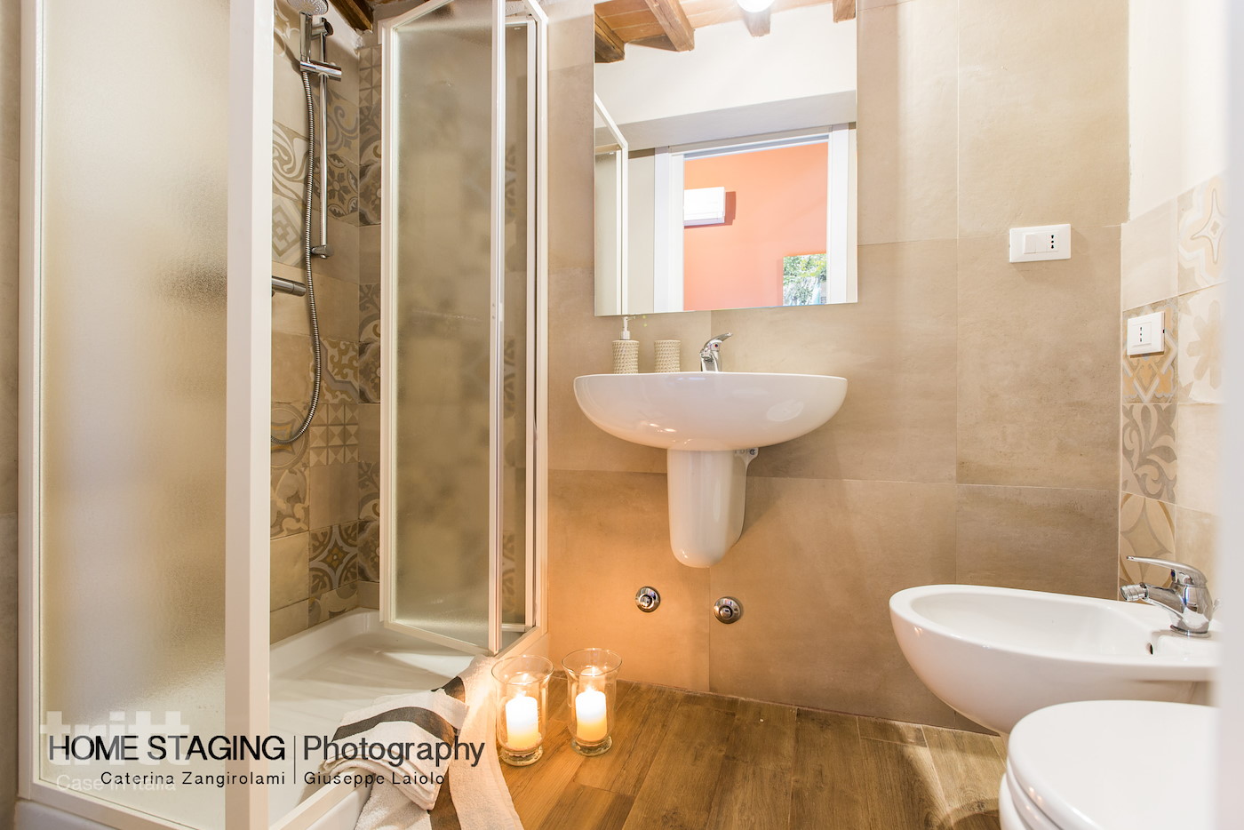 Eerste verdieping: 3 tweepersoonsslaapkamers met elk een ensuite badkamer met douche, wastafel, toilet en bidet (geen wandföhn).
