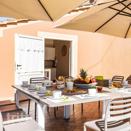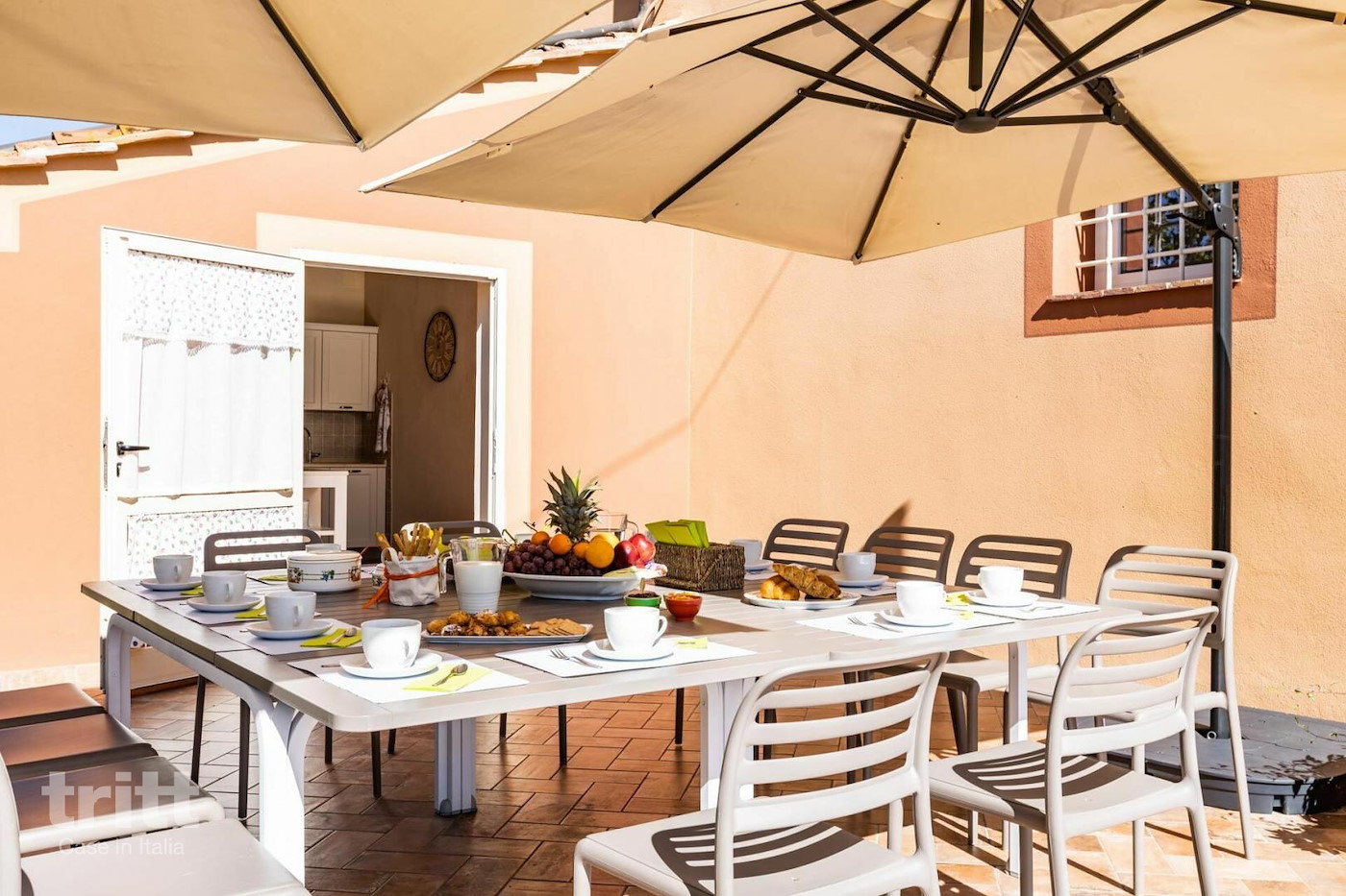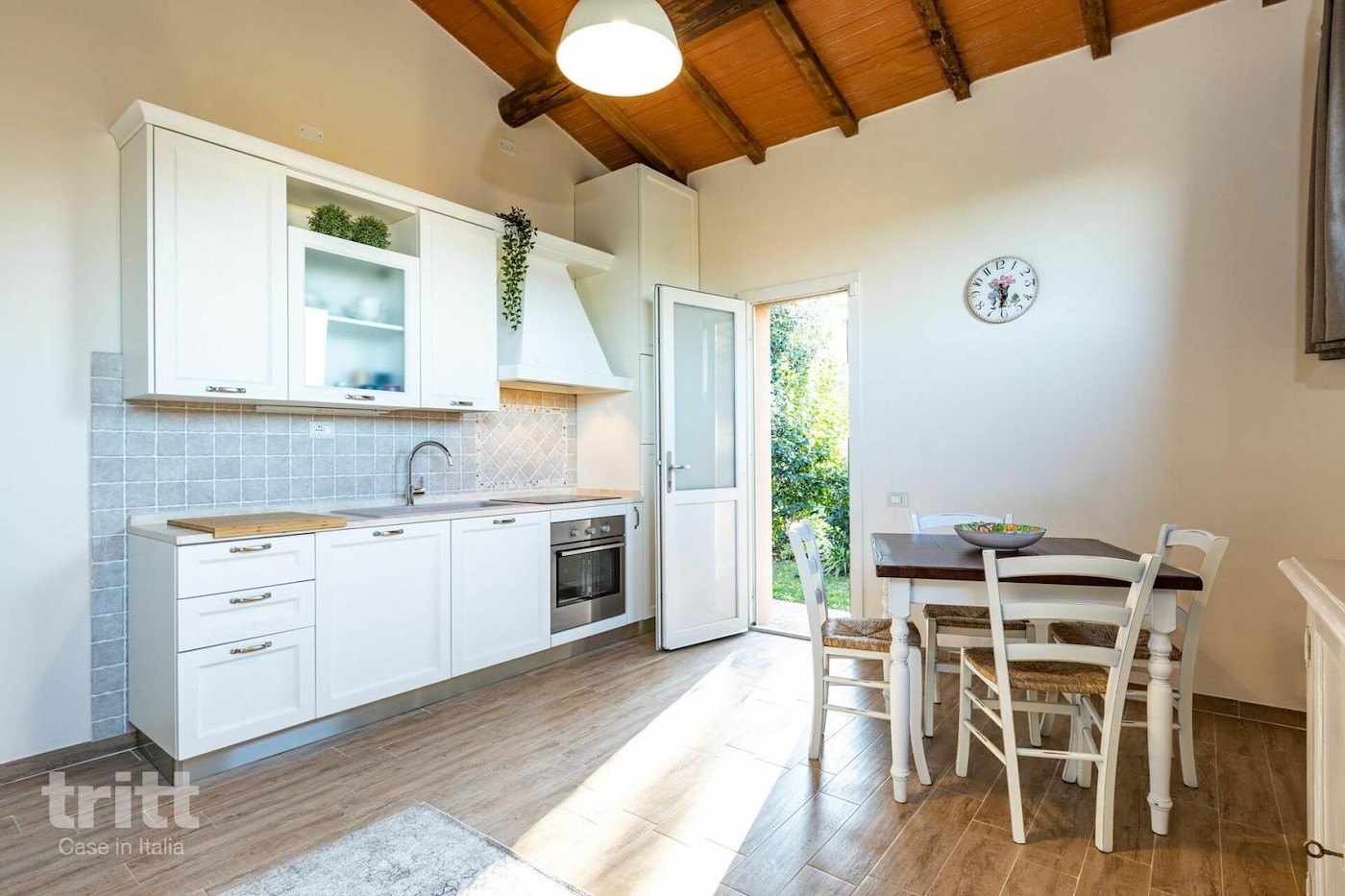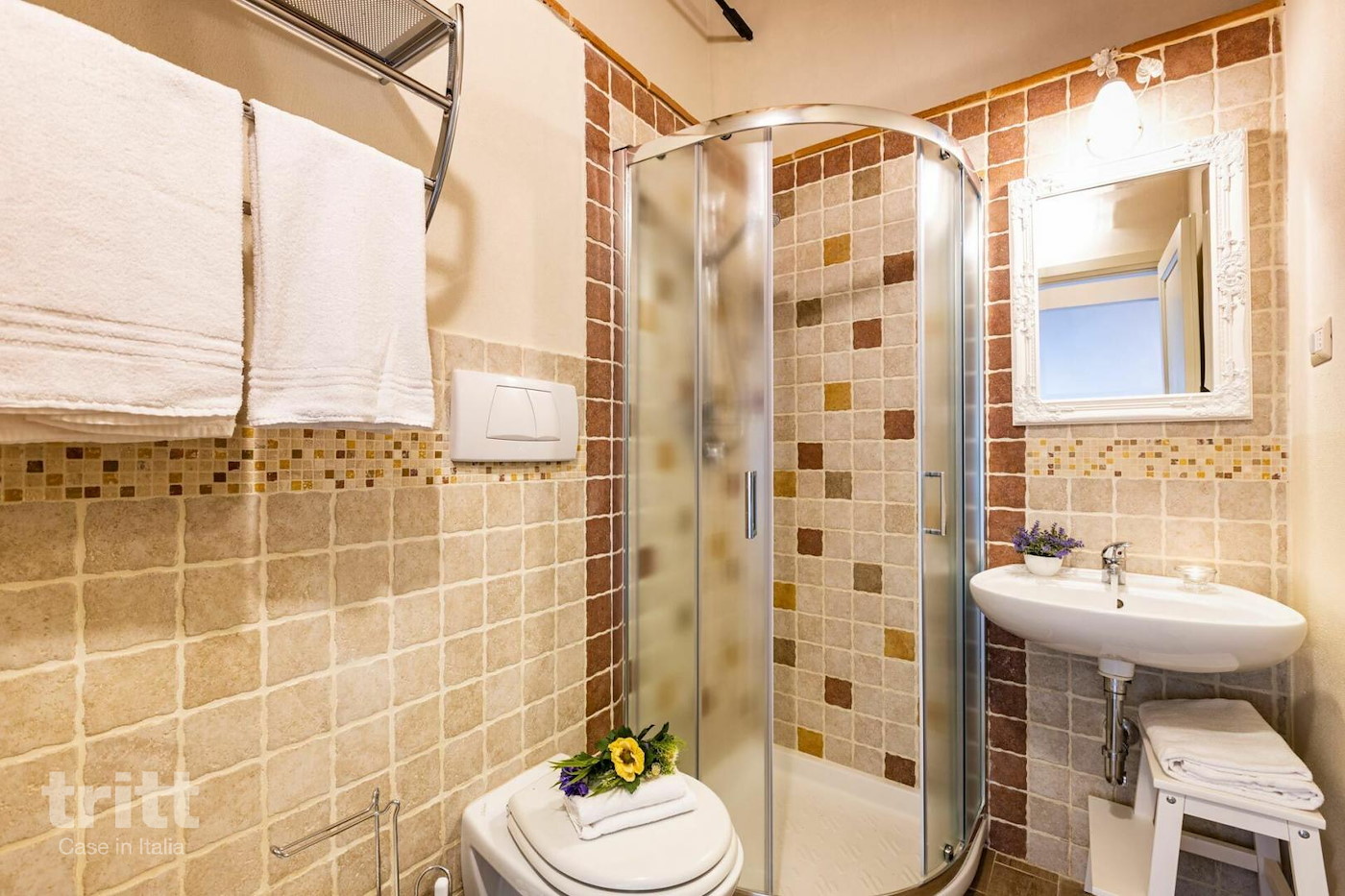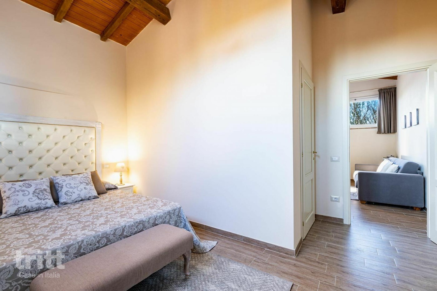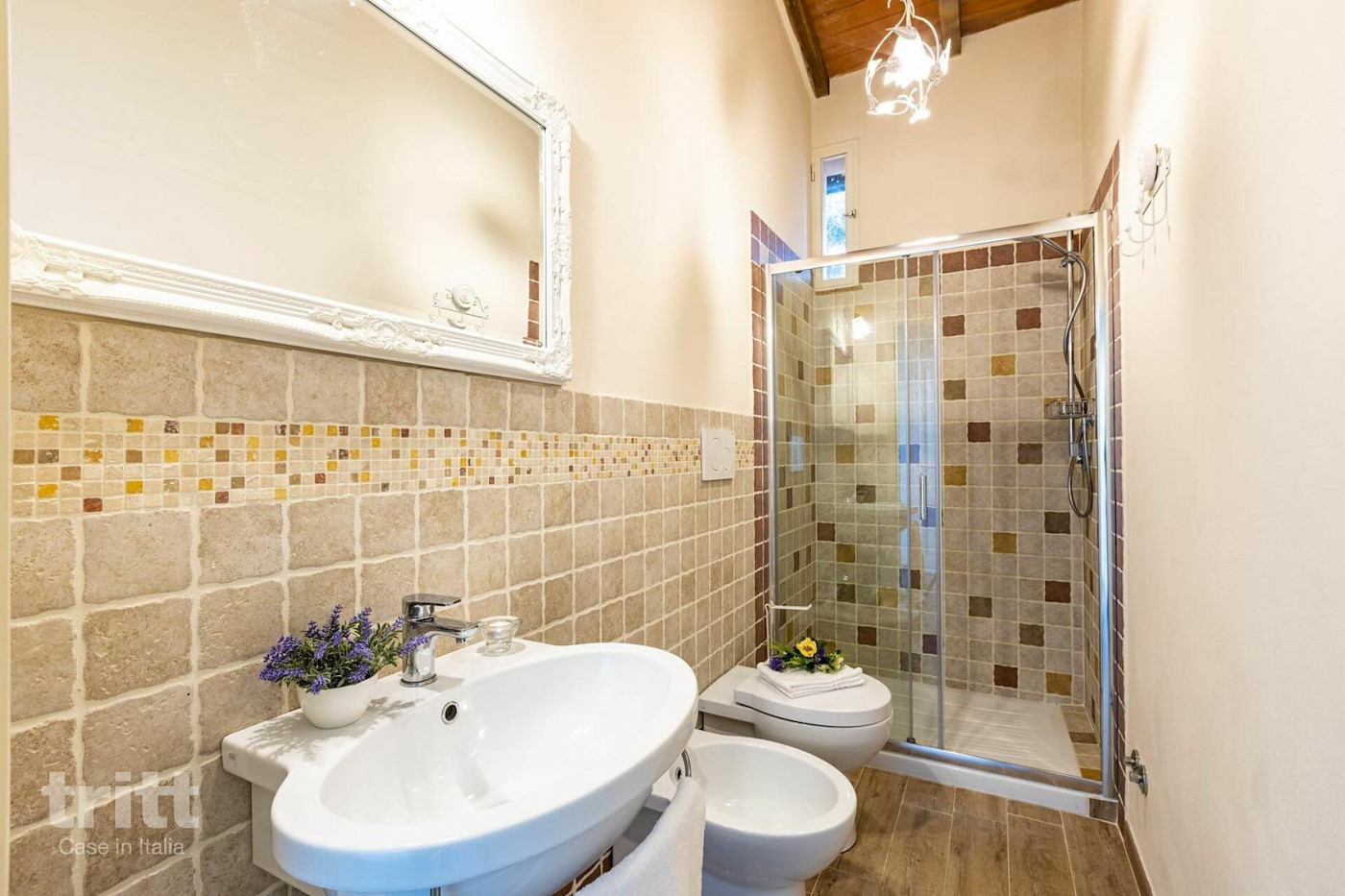CIN: IT050025B55OJWFJBQ Hoofdhuis (300m2) – Begane grond: Grote woonkamer met tv, eethoek en open haard, doorgang naar de keuken voorzien van inductiekookplaat, oven, koelkast, magnetron en vaatwasser, vanuit de keuken een deur naar buiten; bijkeuken met wasmachine; tweede zitruimte met open haard en tweepersoonsslaapbank; extra badkamer met toilet; slaapkamer met tweepersoonsbed, airco en eigen badkamer met douche, wastafel en toilet.