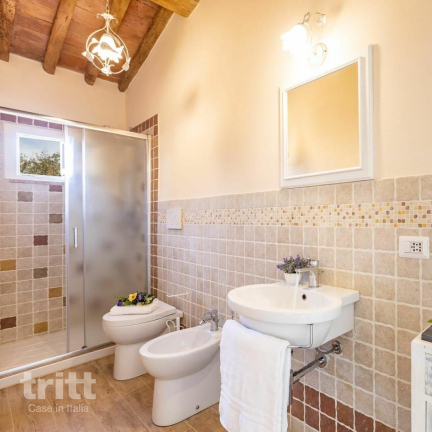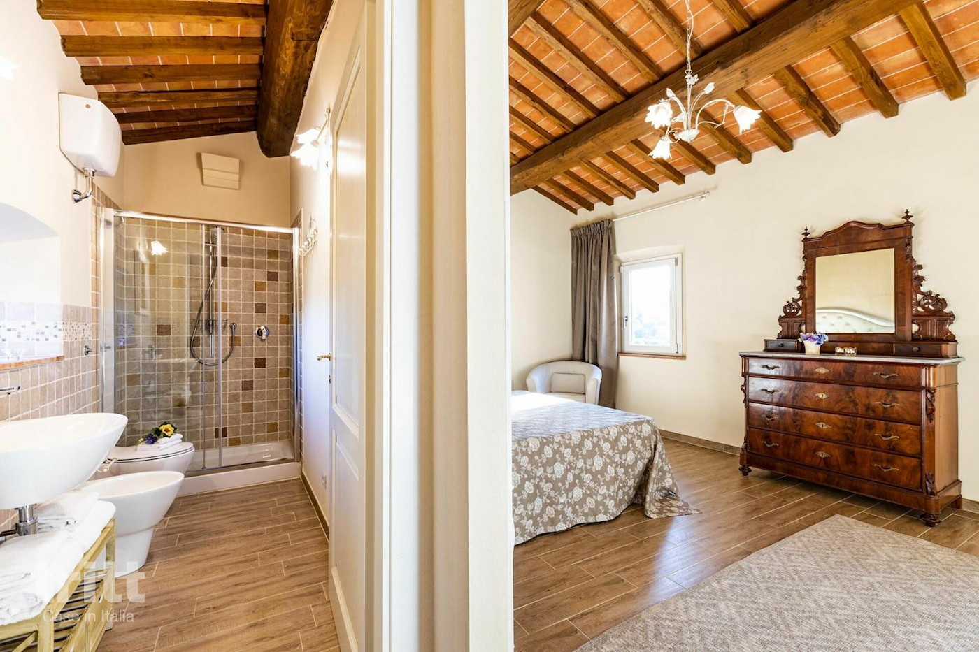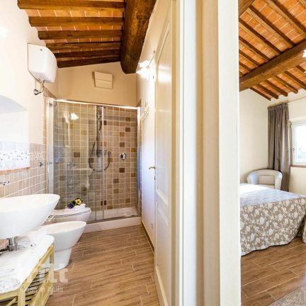 Dependance 2 (30m2) – Begane grond: Leefgedeelte met eethoek, kitchenette voorzien van kookplaat en koelkast; slaapkamer met tweepersoonsbed, airconditioning en eigen badkamer met douche, wastafel en toilet (geen raam). . De villa heeft een prima positie om Toscane en in het bijzonder het gebied rondom Pisa te verkennen. Op korte rijafstand liggen belangrijke culturele steden als Volterra, San Gimignano, Lucca, Siena, Florence en dus Pisa.