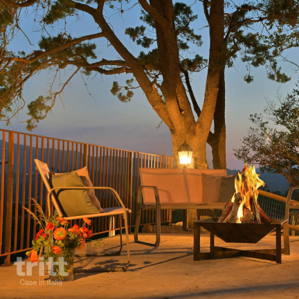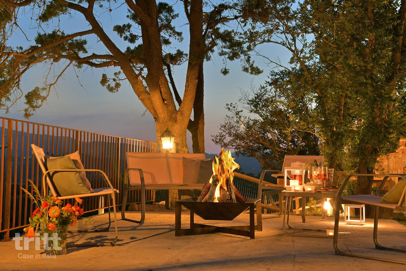 De villa ligt op een landgoed van 45 hectare. Een groot gedeelte van de grond wordt gebruikt voor het verbouwen van hazelnoten. De villa ligt verhoogd op een heuveltje en biedt een heerlijk uitzicht op de groene heuvels en een dorpje in de verte. Het huis wordt bereikt over een eigen grindweg van ca. 700m. Parkeren kan in de schaduw, privé bij het huis.