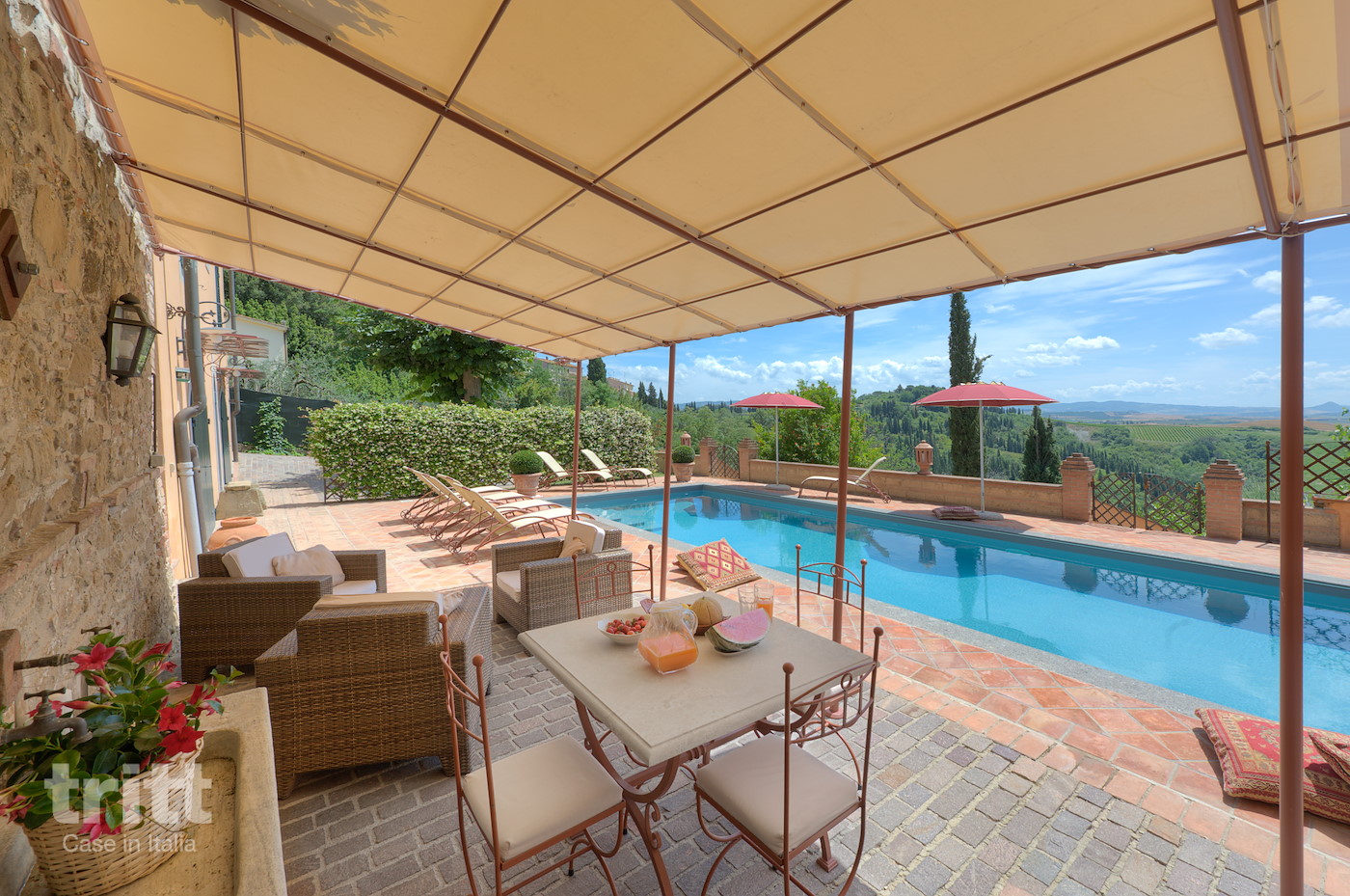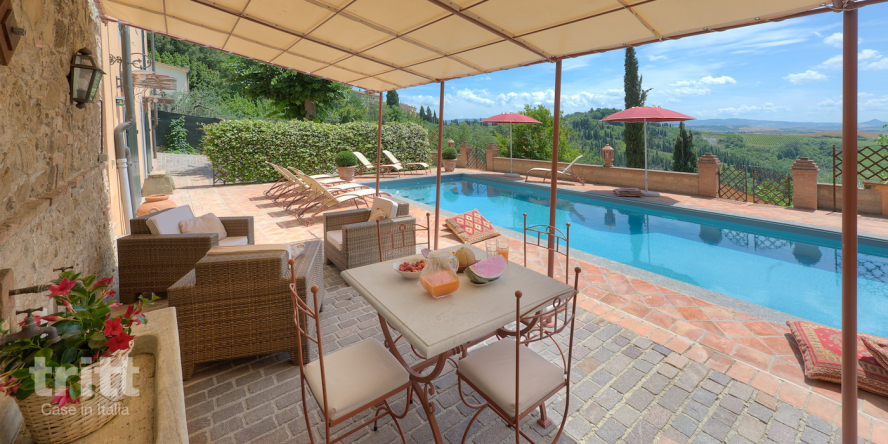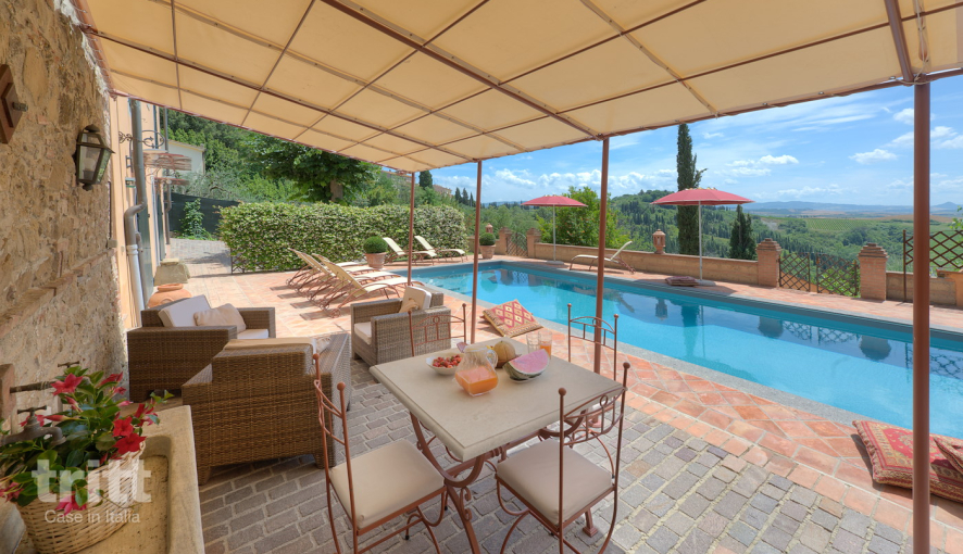 Toscane, Ville Di Corsano8 43 1- Smaakvol ingerichte villa met privé-zwembad. Veel licht en spectaculair gelegen op een heuvelrug vlakbij Siena.