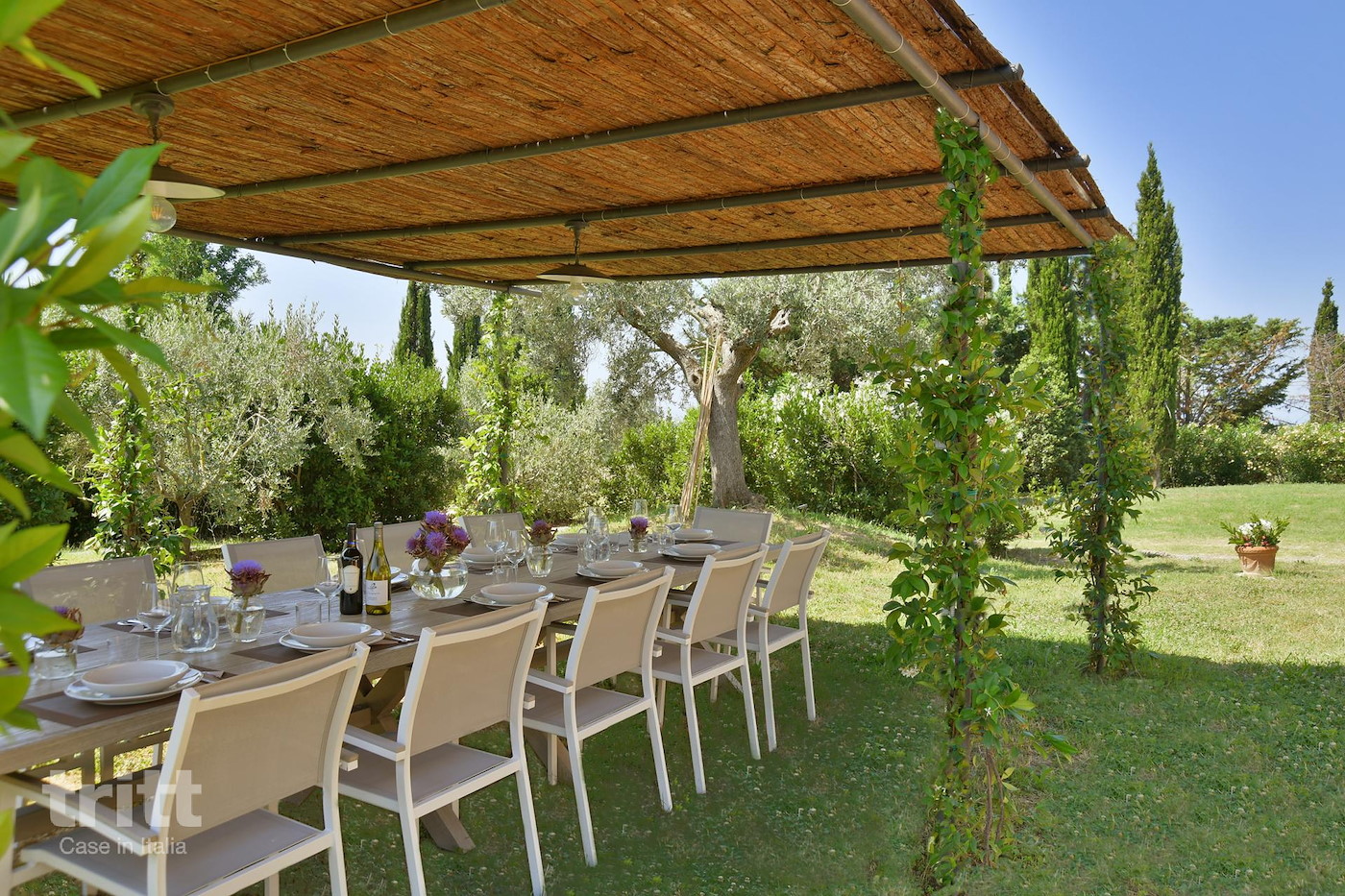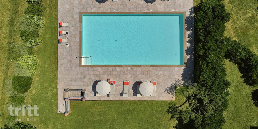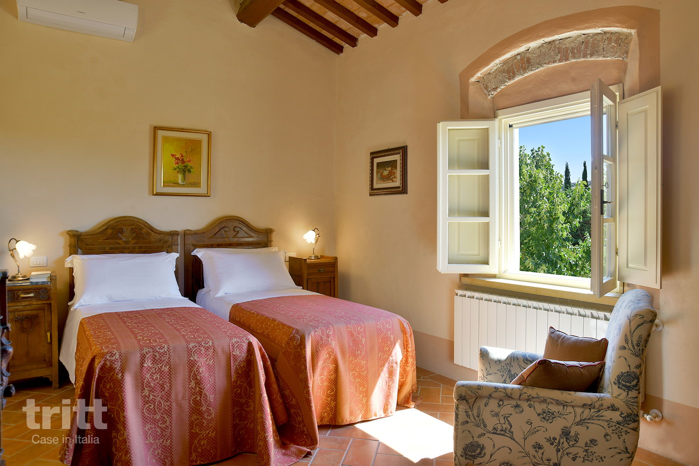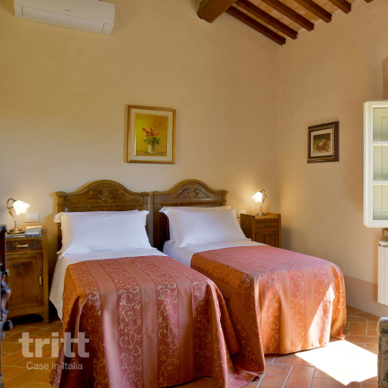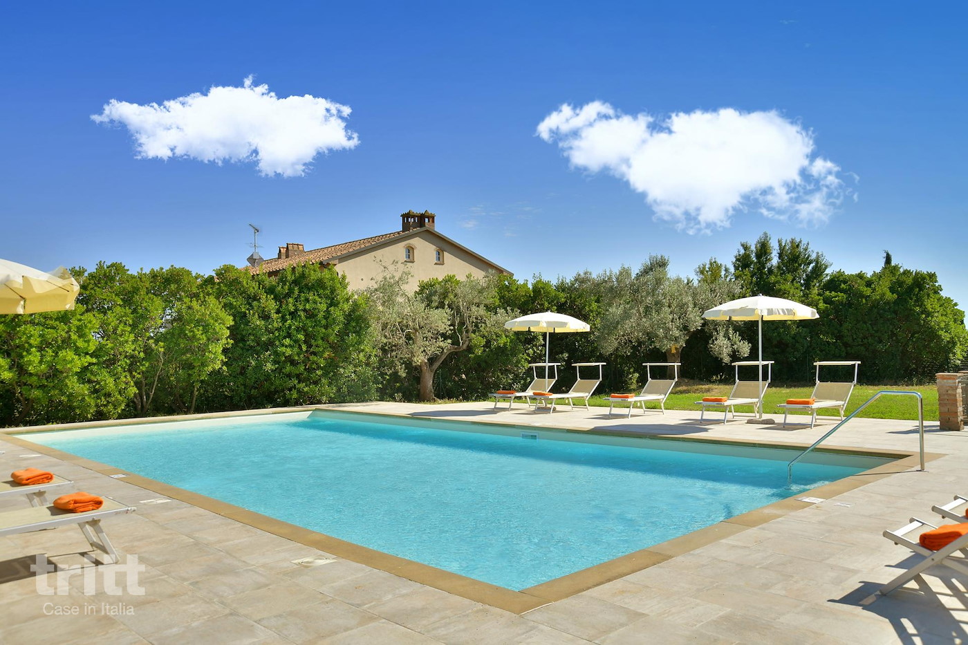Het vakantiehuis bestaat uit een hoofdhuis en een bijgebouw (dependance) en wordt omringd door 23 hectare land, waardoor het een geweldige vrijstaande positie heeft. Het huis heeft een karakteristieke Toscaanse toegangsweg van 200m omzoomd door cipressen en olijfbomen. In de ruime tuin ligt een fijn zwembad met zonneterras. Het zwembad is omheind dus het is hier ook veilig voor kleine kids.