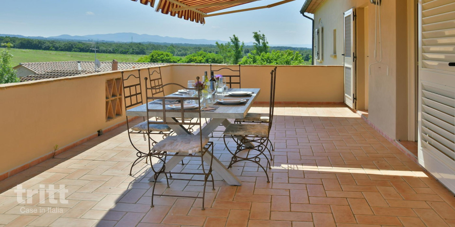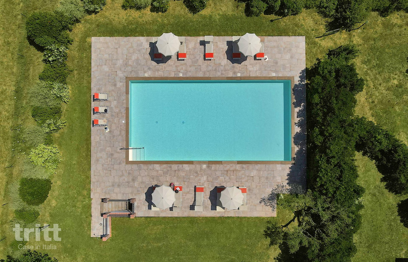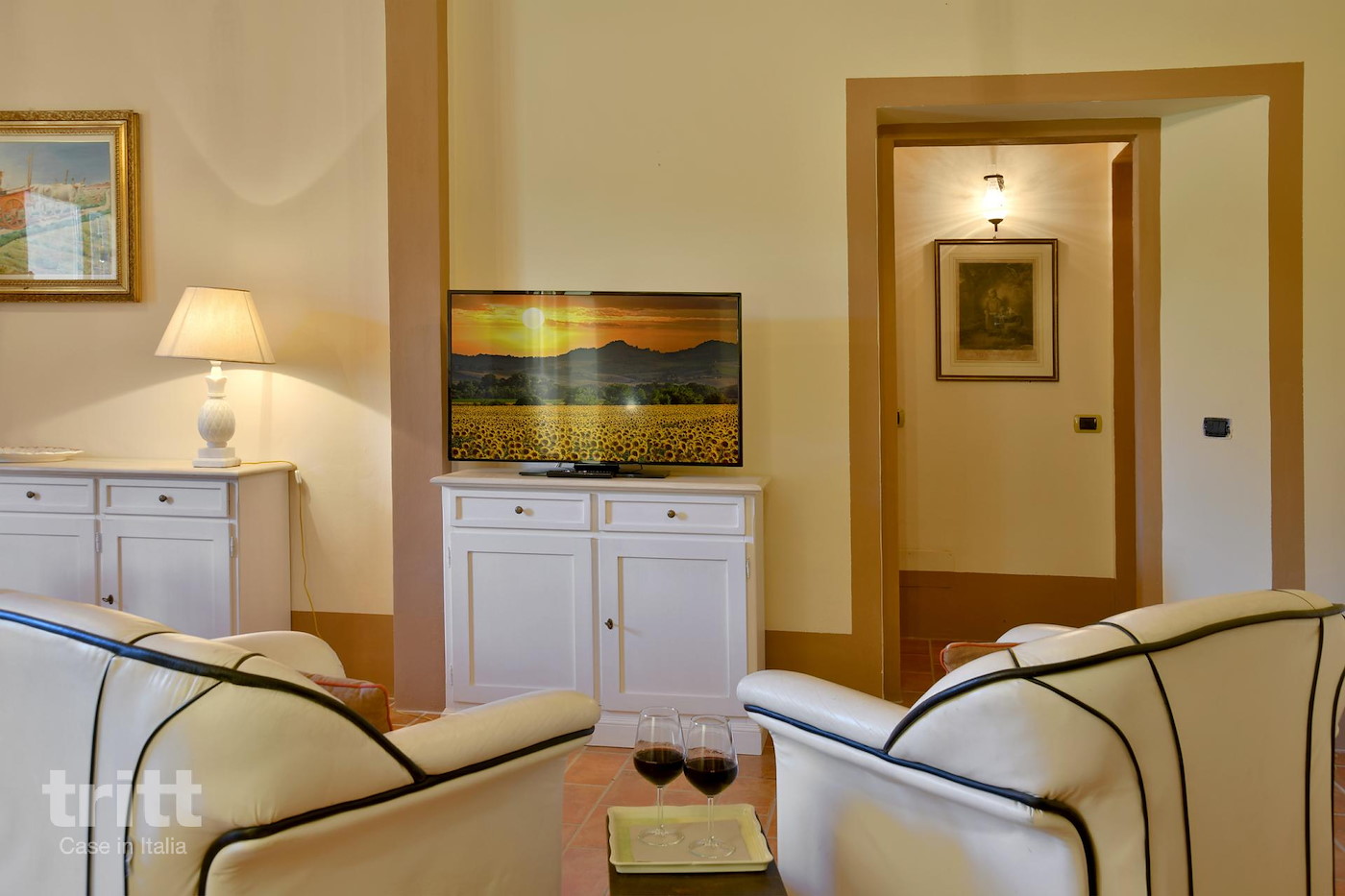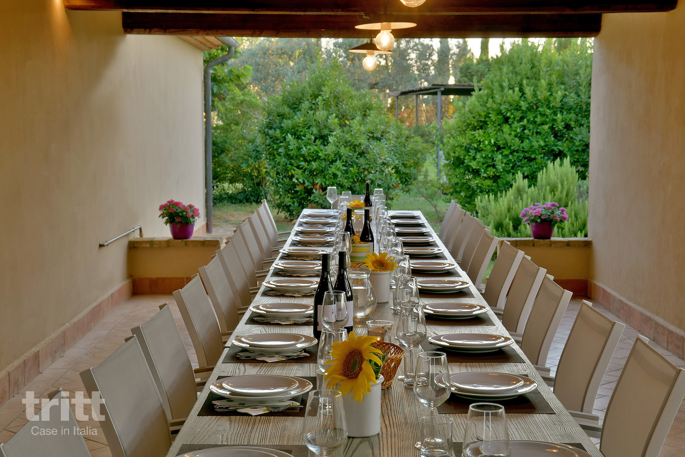 Het vakantiehuis bestaat uit een hoofdhuis en een bijgebouw (dependance) en wordt omringd door 23 hectare land, waardoor het een geweldige vrijstaande positie heeft. Het huis heeft een karakteristieke Toscaanse toegangsweg van 200m omzoomd door cipressen en olijfbomen. In de ruime tuin ligt een fijn zwembad met zonneterras. Het zwembad is omheind dus het is hier ook veilig voor kleine kids.