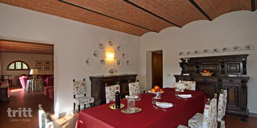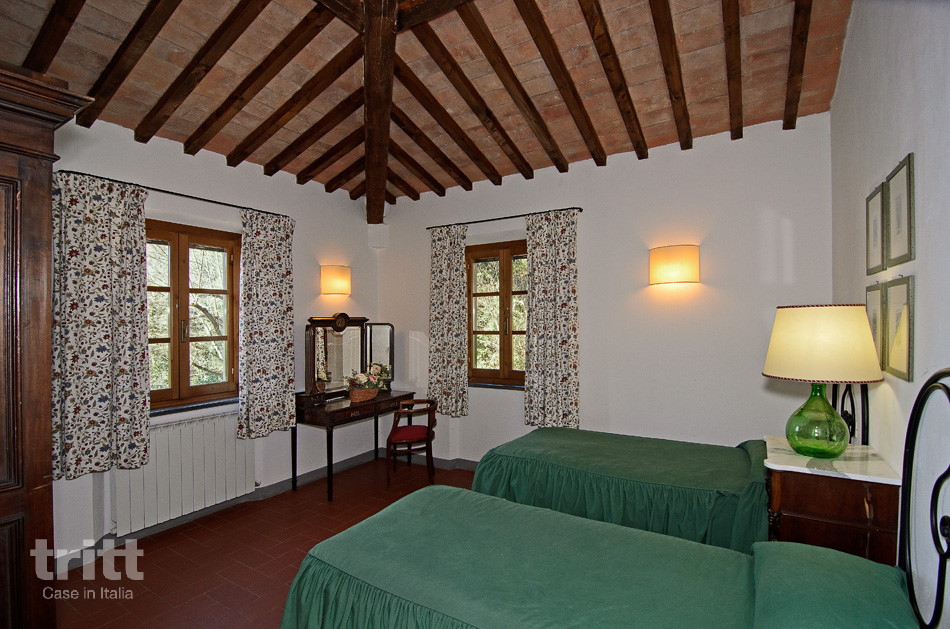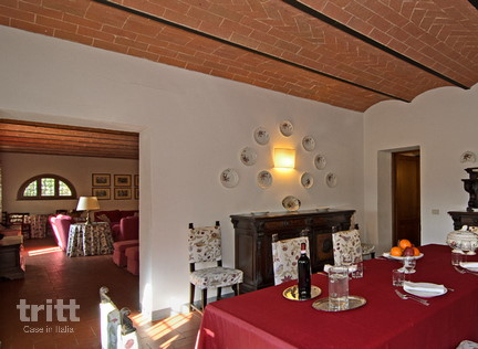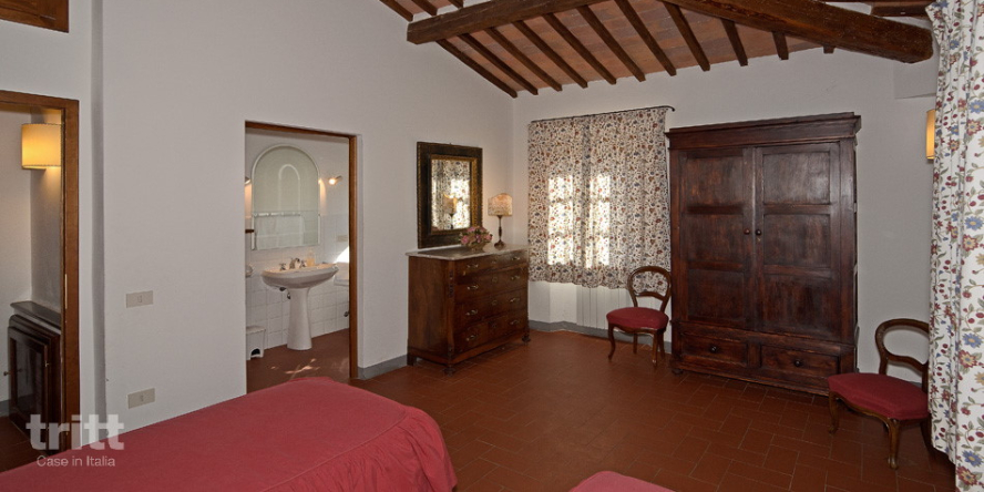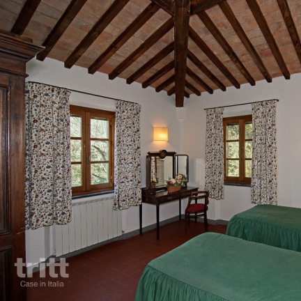 Het 600 hectare wijnlandgoed is van de familie Gaslini Albert, een belangrijke naam in Italië. Het bestaat voor 110 hectare uit wijngaarden, 40 hectare olijfgaarden, een stuk omheind jachtgebied, graanvelden en bossen. De Sangiovese top kwaliteit wijnen zijn beroemd over de hele wereld. Oorspronkelijk komt de familie Gaslini uit Genova, waar ze het grootste en belangrijkste ziekenhuis gerealiseerd hebben. In totaal staan er 5 vakantievilla’s op het landgoed. Tevens is er het hoofdgebouw, een gerestaureerd voormalig klooster uit 1089, waar droombruiloften kunnen worden georganiseerd. Door de grootte zou je niet zeggen dat de villa die je in de verte ziet tot hetzelfde landgoed behoort.
