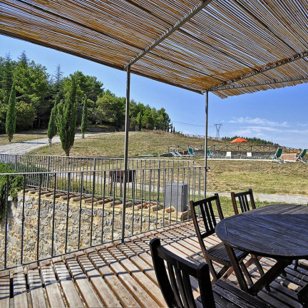 Het huis heeft een privé zwembad met terras en zonnestoelen. Het zwembad beschikt over een automatisch rolluik waarmee het zwembad elke avond wordt afgesloten. Zo blijft de temperatuur gelijkmatig! Ook is er een barbecue en zijn er 2 overdekte terrassen waar u de schaduw kunt opzoeken en ‘al fresco’ kunt eten en/of aan een glaasje wijn nippen, terwijl u geniet van het mooie panorama om u heen. Het terrein rondom het huis is omheind met een houten hek.