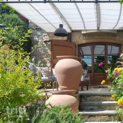 Het vakantiehuis in Siena ligt op een terrein met nog 5 vakantiewoningen, het zwembad is in gedeeld gebruik met de gasten van deze woningen. Het huis heeft een fijne sfeer met een mooie combinatie van oude materialen en bijzondere details. Er zijn 2 slaapkamers, inclusief een slaapbank zijn er slaapplaatsen voor max. 5 personen. Het vakantiehuis heeft een overdekte buitenruimte, waar je ook bij minder goed weer prima zit, dit geldt ook voor de omheinde tuin met bloemen en planten. De keuken is goed ingericht en voorzien van diverse keukenbenodigheden. Tot de overige voorzieningen behoren o.a. Wifi, airconditioning in alle kamers (€ 15,00 per dag), een alarminstallatie en een kluisje. Het vakantiehuis biedt vanuit elk raam een mooi zicht. Vanaf het terras op de 2e verdieping heb je een werkelijk mooi panorama voor je.